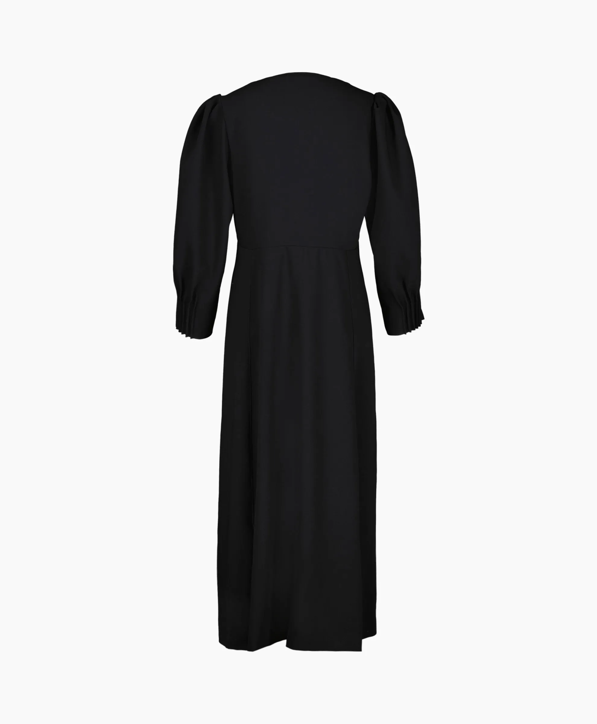 Midi-Jurk Met V-Hals Met Knopen Aan De Voorkant. Gepofte Driekwartmouwen Met Geplooide Zomen Geven Volume Aan Het Hoog Getailleerde Silhouet. Materiaal: 100% Polyester